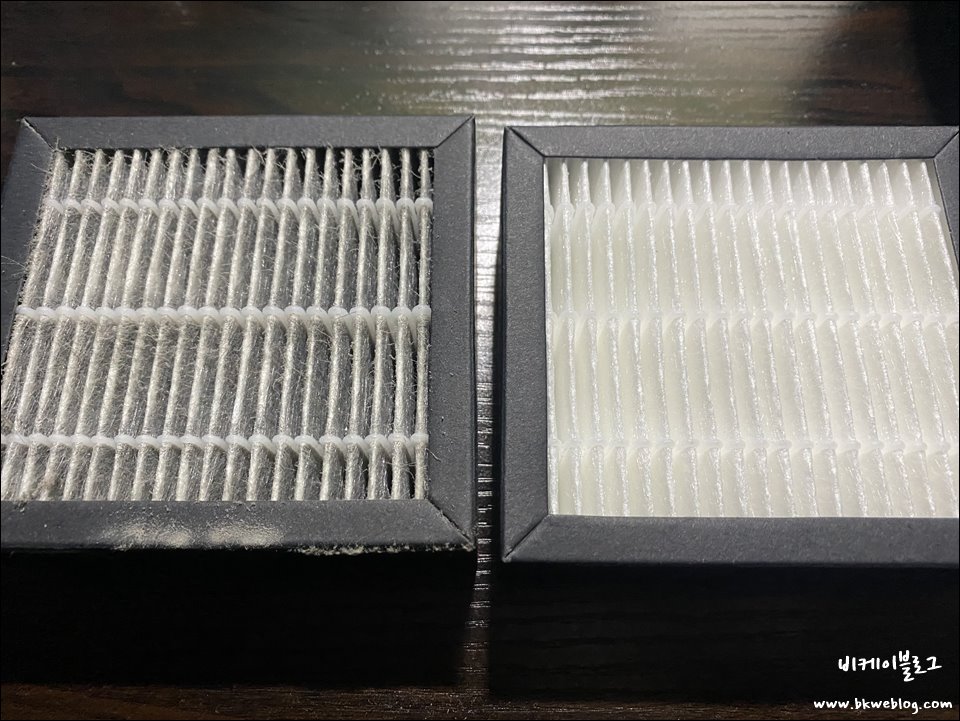 새로운 미세먼지 필터와 비교, 1년 정도 되었는데 차이가 많이 납니다.