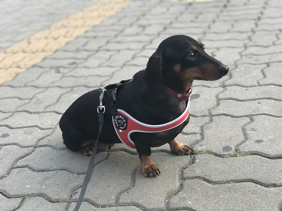 다리가 짧은 것은 귀엽다 치지만 닥스훈트의 우람한 가슴 때문에 하네스가 정말 머리가 아픕니다.