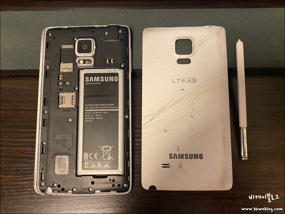 보유하고 있는 갤럭시노트5는 일체형인데, 이 갤럭시노트4와 갤럭시노트엣지까지 후면 케이스 탈착 형태였던 것 같습니다.