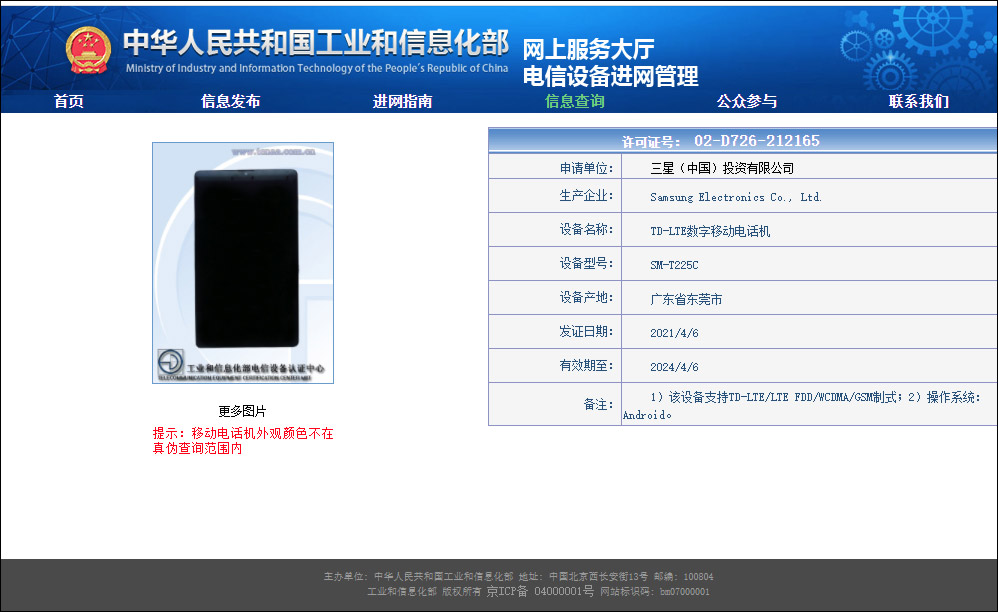 지난 3월 초 블루투스 인증을 받은 것이 확인된 갤럭시탭 A7 라이트 (SM-T225)가 이번에는 중국 TENAA 인증을 받은 것이 확인이 되었습니다.