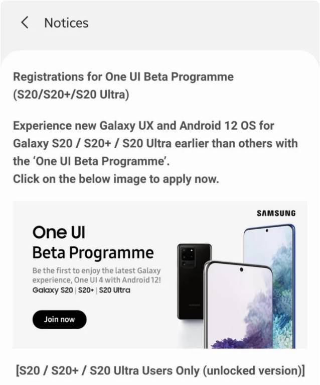 샘모바일닷컴에 의하면 미국에서 갤럭시 S20의 안드로이드 12와 One UI 4.0 베타 프로그램이, 영국에서는 갤럭시 노트 20의 안드로이드 12와 One UI 4.0 베타 프로그램이 오픈되었다고 합니다.