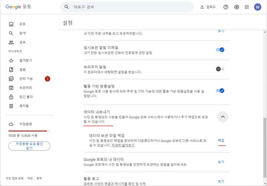 구글 포토가 무제한 용량 서비스를 종료할 때 백업을 받았던 것 같기는 한데.. 확실하게 기억이 나지 않아 백업을 받고 구글 포토의 모든 사진을 삭제하기로 합니다.