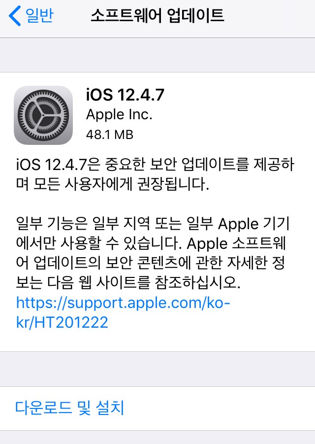IOS 12 버전에 머무르고 있는 구형 아이폰, 아이패드를 보유하신 분들은 업데이트를 적용하시기 바랍니다.