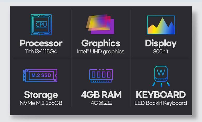 인텔의 11세대 i3 CPU인 i3-1115G4는 듀얼 코어이지만 10세대 i5와 비슷한 성능을 보일 정도로 많은 성능 개선이 있습니다.