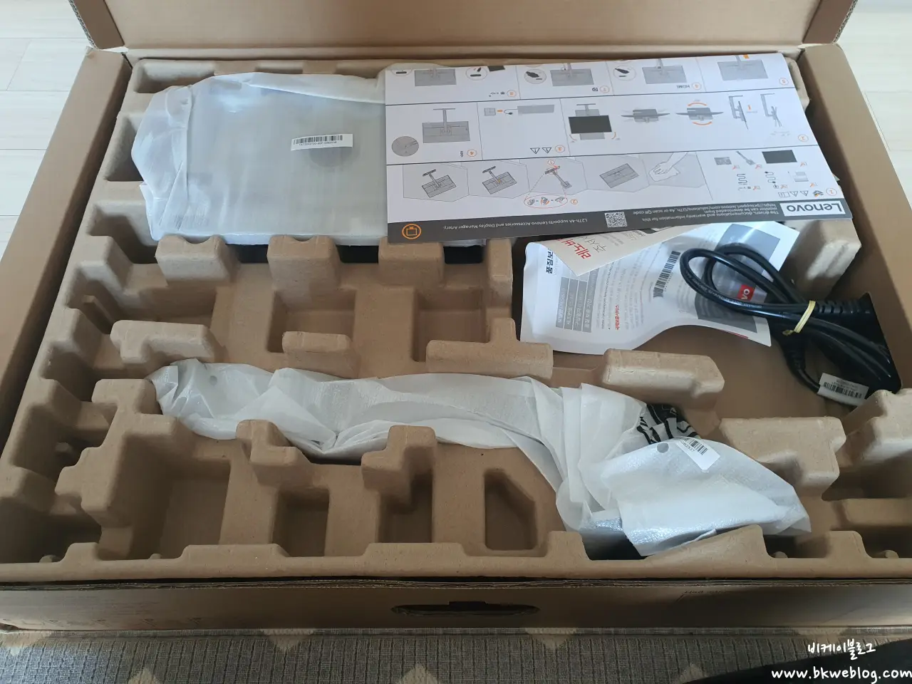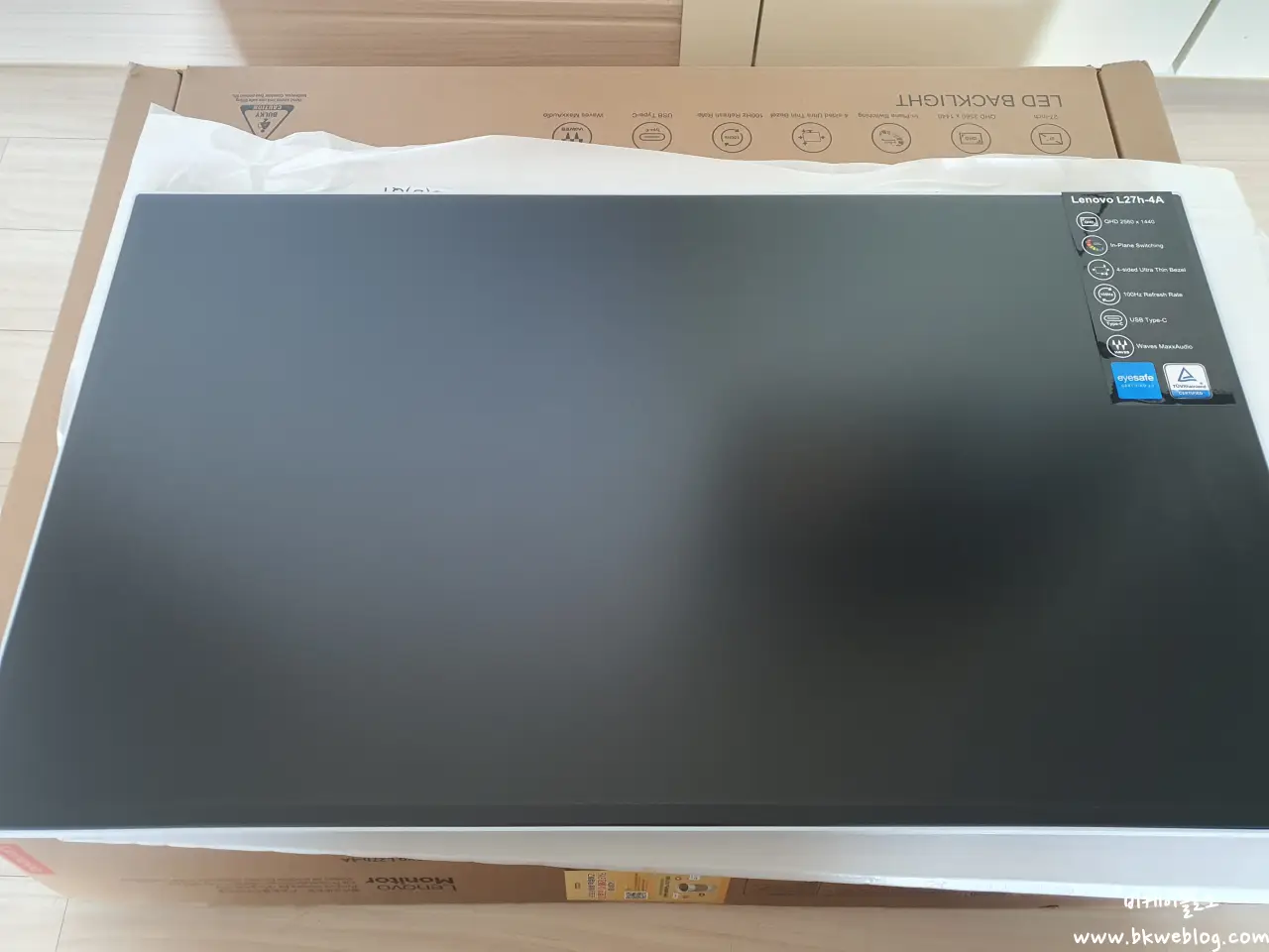 바로 다음 날 도착한 레노버 L27-4A 모니터, 박스 형태가 27Q-10과 다르네요.