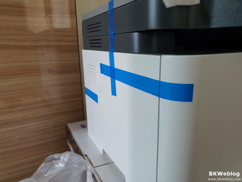 프린터나 복합기를 한번이라도 구입을 해보셨다면 처음 박스에서 꺼낸 이후 붙어 있는 테이프들과 틈틈히 박혀 있는 종이 그리고 완충재를 하나도 빠짐없이 빼줘야 하는 것을 알고 있으실 겁니다.