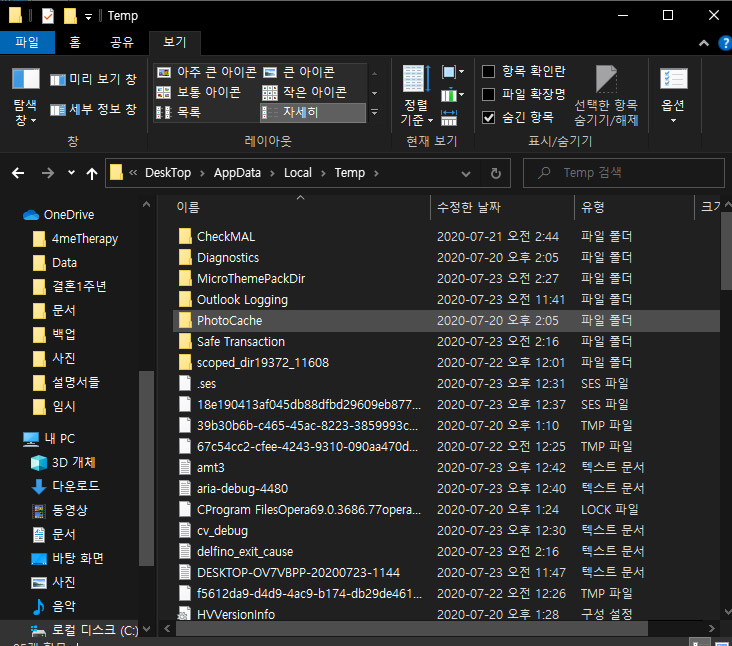 여기서 Local 폴더로 들어가고 다시 Temp 폴더로 들어갑니다.