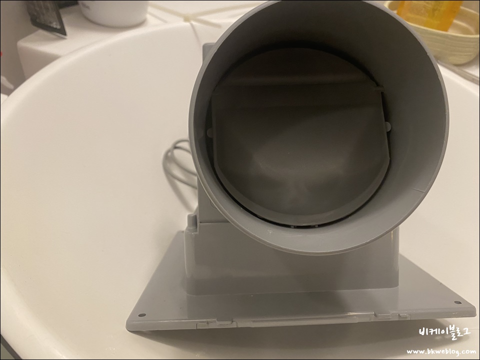 이 것은 냄새 역류 방지를 위한 댐퍼의 모습입니다. 완전히 밀착되는 것은 아니라 냄새가 들어오기는 할 것으로 보입니다만 없는 것 보다는 좋을 것이라 예상해봅니다.