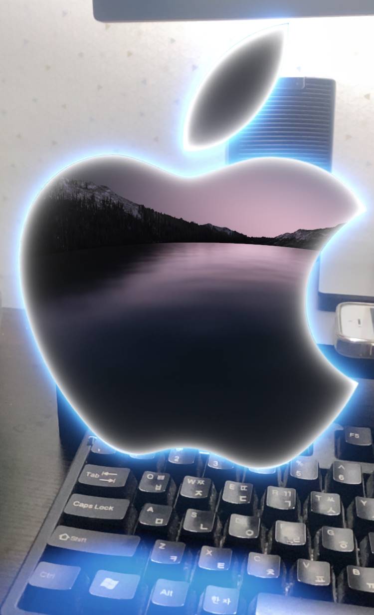 아이폰이나 아이패드로 애플 이벤트 페이지를 방문한 이후 애플 AR 로고를 두번 터치 하면 위와 같은 풍경을 볼 수 있습니다.